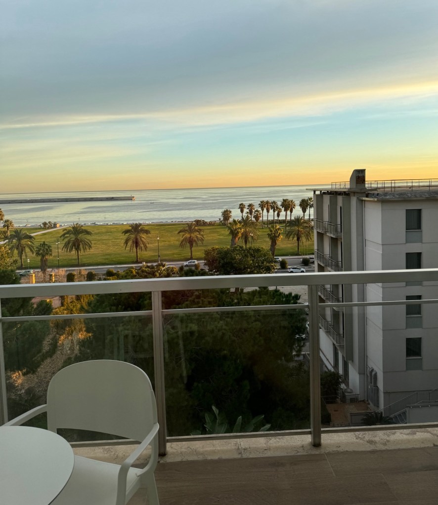 We stayed at the hotel NH Palermo (Foro Italico Umberto I, 22/B, 90133 Palermo PA, Italy) in the Superior Room with a view and terrace. Wonderful view, rooms are remodeled and modern. Nothing beats watching the sunrise and sunset here.