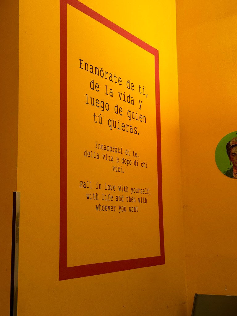 The Pizzeria has a very welcoming vibe when you enter, its spacious, and the walls are filled with quotes in spanish, italian and english. This one quote is one of my favorites.