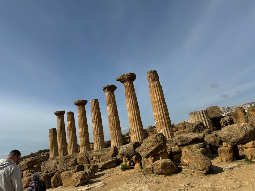 Day 2– Took a day trip to Agrigento Sicily to visit the Valle dei Templi (Valley of the Temples) We took the SS624 and SS115and enjoyed all the mountain views and the olive tree farms. It was about a 2- 2 ½ hour drive from Palermo.We purchased the entrance tickets there at the ticket office, it was about 12 Euros a person. It takes about 2-3 hours to walk the Valley and appreciate the ruins a little more if you stop to eat something or take breaks in between ruins. We got there around 1200 (12:00pm) and left around 1500 (3:00 pm). I believe it was a perfect time to visit, not crowed and weather was nice.